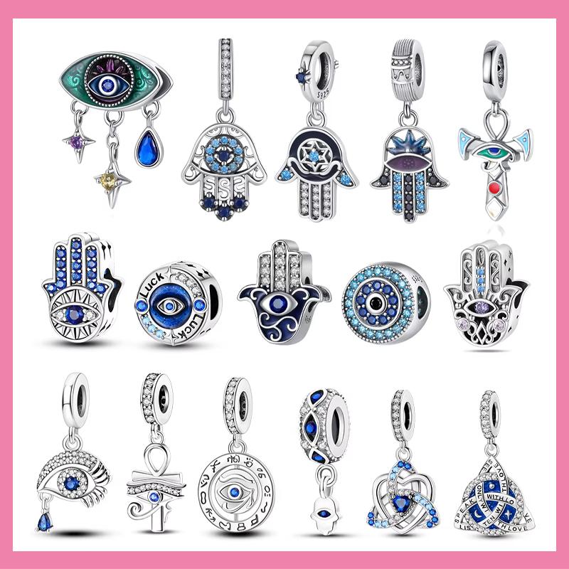 Mysterious Copper Love Evil Eyes Celtic Knot Palm Pendant Beads Safety Clip Fit Brand Bracelet Premium Gift Diy