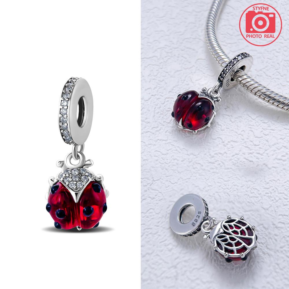 Red Ladybird Dangle Charm Copper Plated Fit Charms Copper Original Bracelet For Jewelry Making