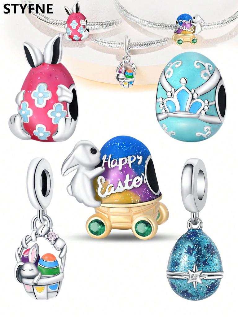 Charms Plata Easter Bunny Eggs Beads Charm Copper Plated Fit Charms Copperoriginal Bracelet For Jewelry Making Diy Charm