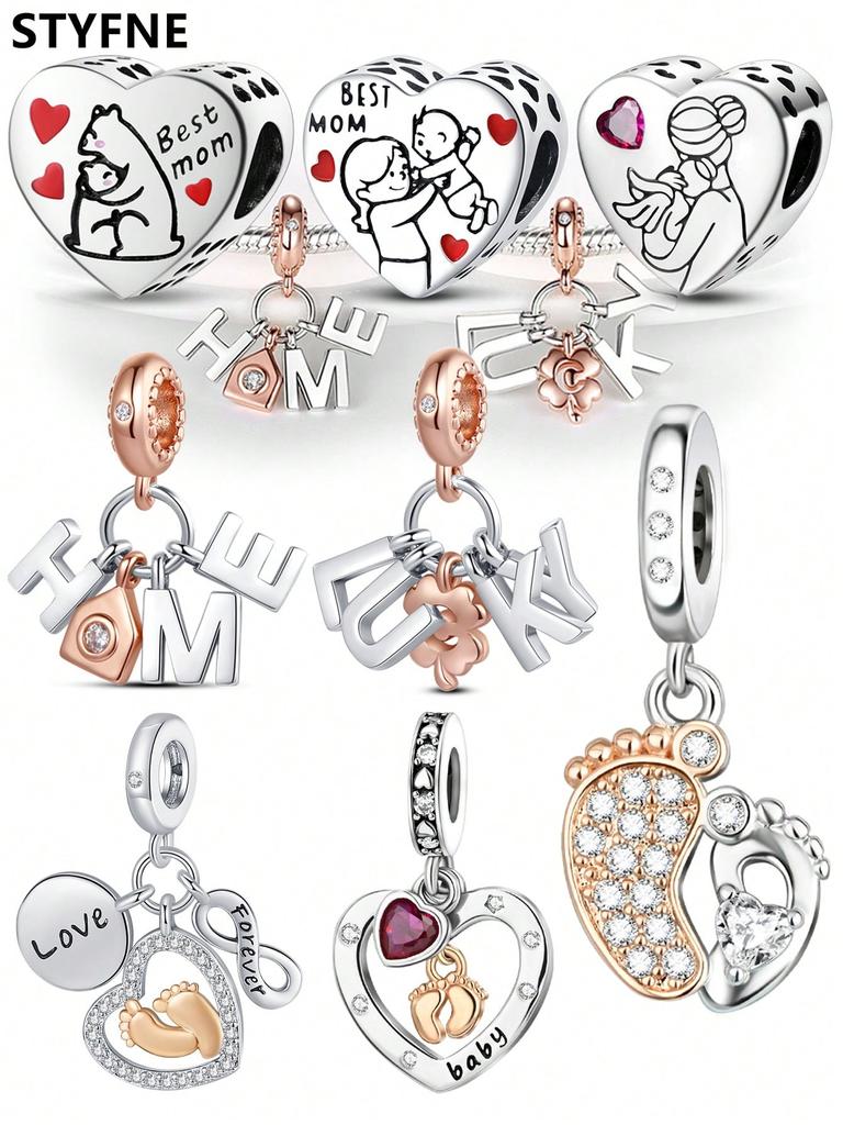 Charms Plata Copper Colors Mother'S Day Love Hug Letters Beads Pendant For Original Bracelet For Women Diy Jewelry Love Gift