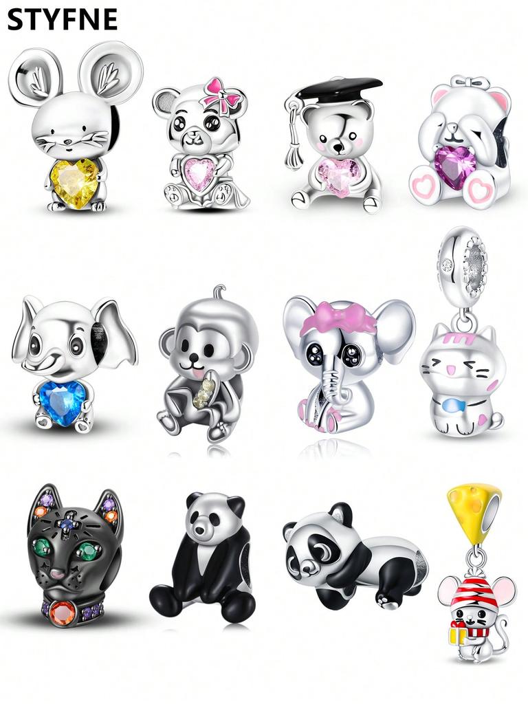 Copper Colors Cute Animals Pandas Elephantsbeads Charm Pendant For Original Bracelet For Women Diy Jewelry Love Gift