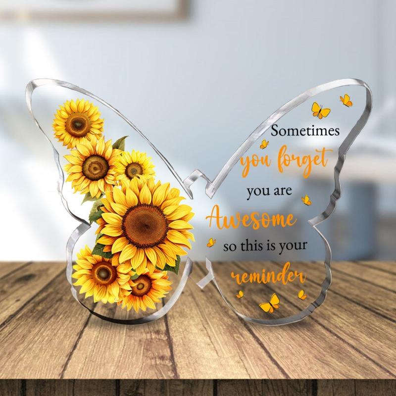 2D Flat Elegant Sunflower & Butterfly Acrylic Inspirational Decorative Plaque, Positive Affirmations - Clear Gift Box Design, Suitable for wall decora