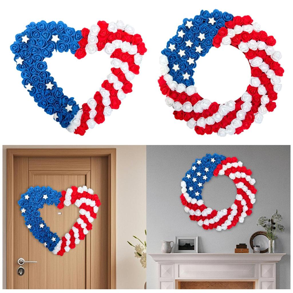 Patriotic Wreath Patriotic Americana Wreath Memorial Day Artificial Flower for Home Flag Day Memorial Day Veterans Day Decor