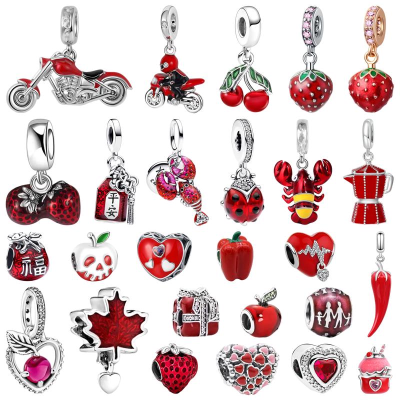 Fine Diy Women Jewelry Gifts Red Series Charm Beads Seeded Strawberry Maple Leaf Cherry Lucky Bag Fit Original Bracelet