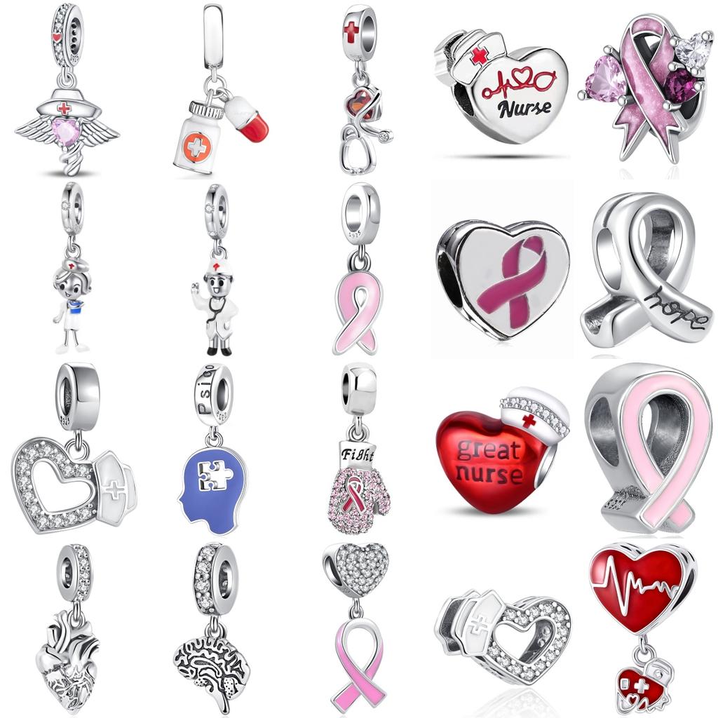 New Beautifulcopper Medical Series Pill Pink Ribbon Pendant Fit Original Diy Bracelet Necklace Fashion Accessories Gift