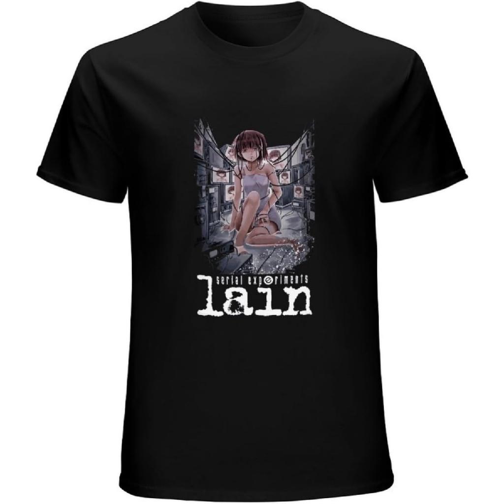 Danshaosu Serial Experi Ments Lain Funny Anime Streetwear Men Casual Short Sleeve Black