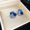 Silver Needle French Court Style Blue Flower Zircon Earrings Light Luxury High-end Stud Earrings Exquisite Niche Earrings
