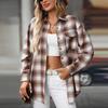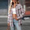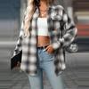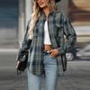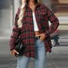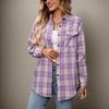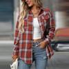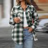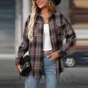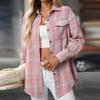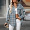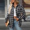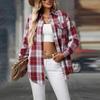 Dámská ležérní móda volná kostkovaná košile s kapsou topy s dlouhým rukávem