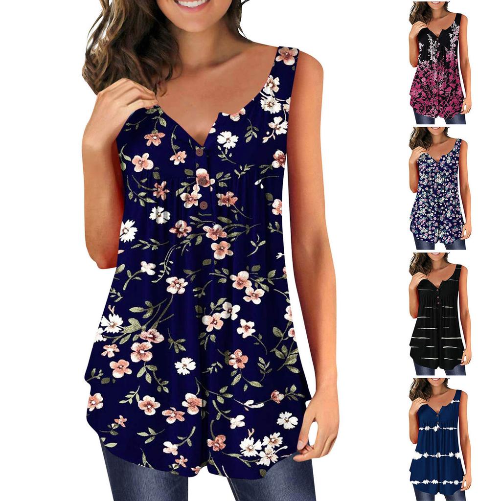 Tank Top For Women Ruffle Tops Loose Tops Casual Oversized Tops Pleated Tops Button Down Casual Summer Floral Tops Describe: Material: This basic tunic top is made of imitation cotton, which is soft, comfortable, stretchy, lightweight but not see-through. Machine washable, quick drying, no fading or shrinking. Features: Sleeveless, V neck, front button fastening. Trendy ruched ruffles the front and back easily cover your midsection and bottom area. Breathable fit. Choose from a variety of different print designs to showcase your unique . How to wear it: This casual tunic sleeveless top has a slim fit and a stylish look that can better fit your figure. It pairs well with skinny jeans or leggings, a chiffon cardigan, coat, jacket or yoga pants. Applicable Occasions: Perfect for casual life daily wear, family gathering, vacation, shopping, dating, party, beach, , street, etc. Suitable for spring, summer, and winter. Size: Before placing an order, please refer to the "Size Chart" the left and the recommended size below. Include: 1 sleeveless top Be careful with the top: hand wash will keep it in condition better, do not bleach