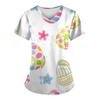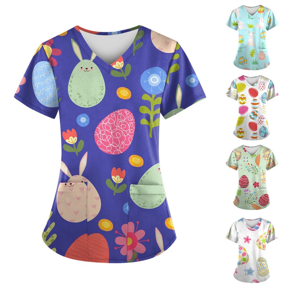 Women Fashion Easter Print V-neck Short Sleeve Workwear With Pockets Tops