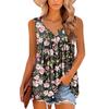 Women's Fashion Floral Printing Pleated Sleeveless Casual T-shirt Vest Button Top