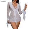 Women Ladies Sexy Lace Patchwork Dress Nightdress Bow Underwear