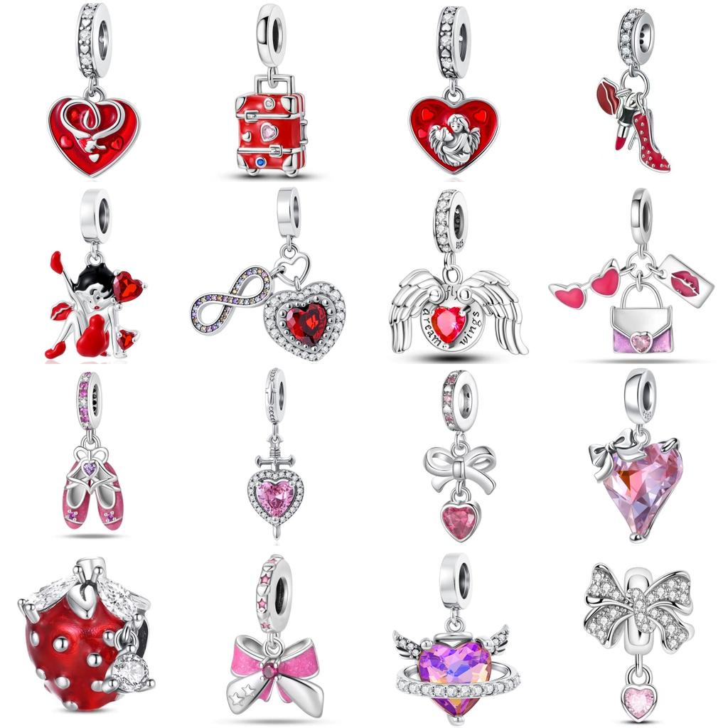 New Copper Red Series Strawberry Bow Infinite Love Mother Pendant Bead Fit Original Charms Bracelet Trinket Jewerly
