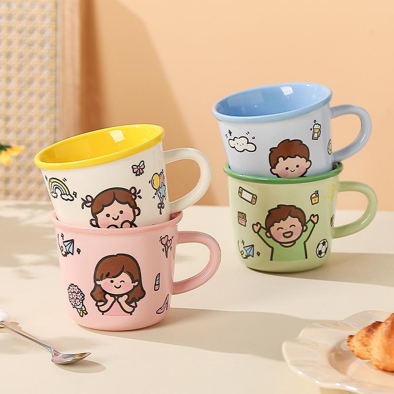 Hrnek pro rodiče a děti, roztomilá sada keramických hrnků, speciální pohár na vodu pro čtyřčlennou rodinu, domácí snídaňový hrnek na mléko pro děti