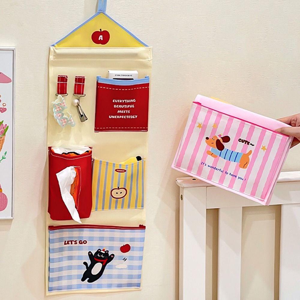 Oxford Tkanina Úložná závěsná taška do koleje Vícevrstvá nástěnná síťovaná kapsa na spodní prádlo Kreslený organizér na drobnosti