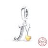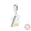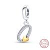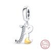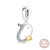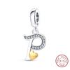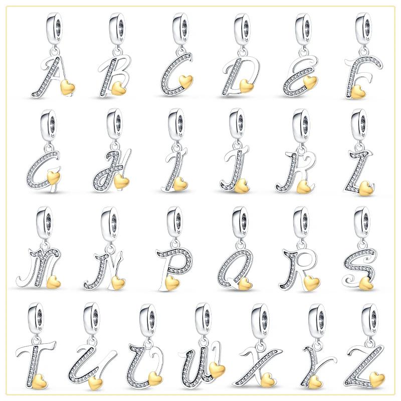 Classic Copper 26 Gold Color Heart Zircon Letter A-Z Charms Beads Fit Original Bracelets Diy Birthday Jewelry Gift