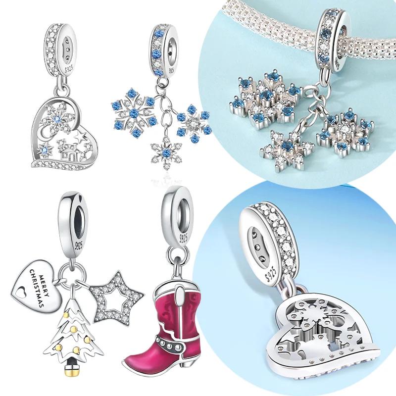 New Copperoriginal Christmas Series Snowflake Charms Heart Star Beads For Women Diy Fine Jewelry Party Gifts Making