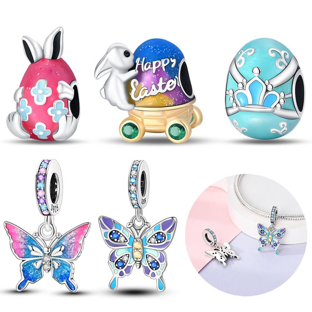 Copper Colors Charms Blue And Purple Butterfly Pendant For Dangle Pendant Bead Jewelry Beads  New Gifts For Women
