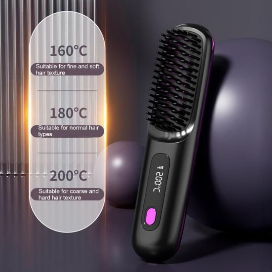 Experience effortless hair styling with our hair straightening comb, featuring advanced "hair care black technology" and negative ion release to reduce static and frizz, leaving your hair smooth, shiny, and naturally straight. The wireless design offers ultimate convenience, perfect for travel, business trips, or quick daily touch-ups without the hassle of cords.