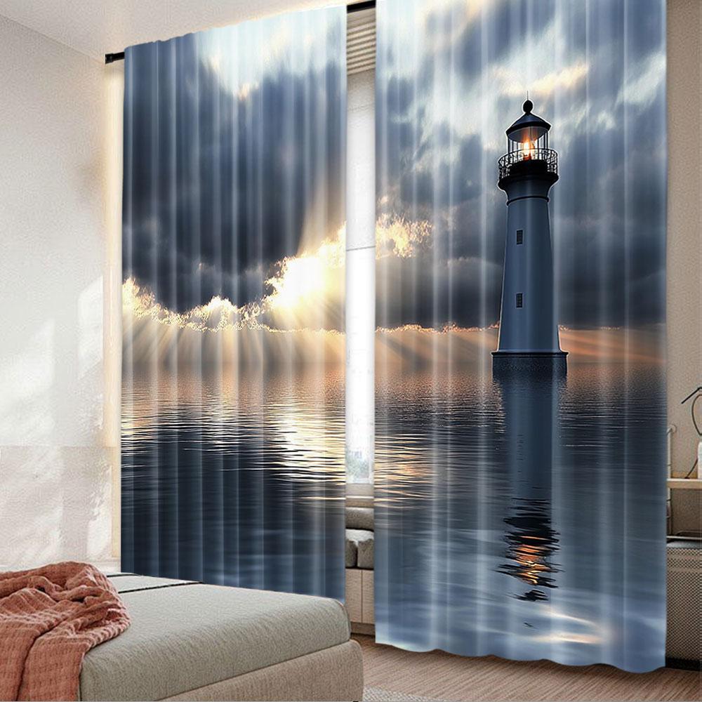 2Pcs Lighthouse Curtains Lighthouse Dark Clouds Reflection On Atlantic Weather Shadow For Bedroom Living Room And Dining Room B