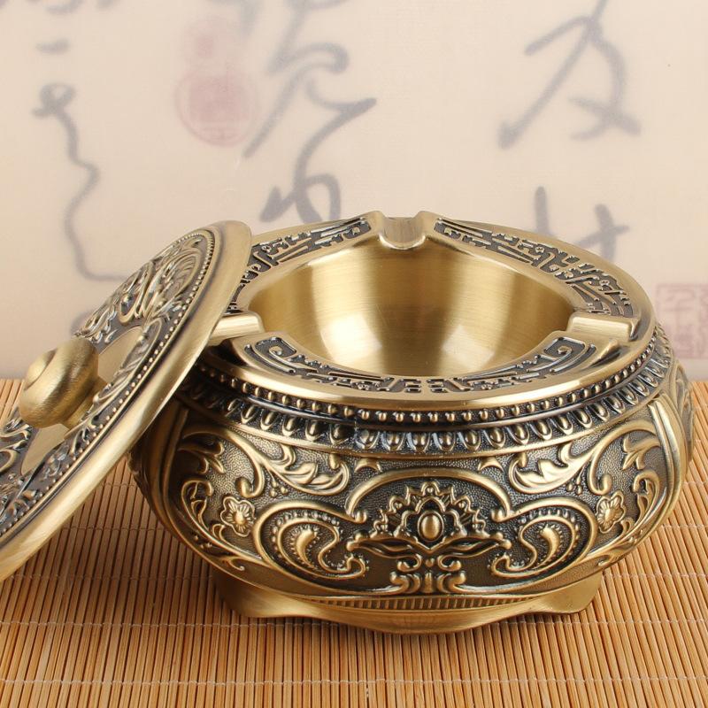 European light luxury ashtray with cover bedroom anti-fly ash household creative personality trend living room retro bronze ashtray