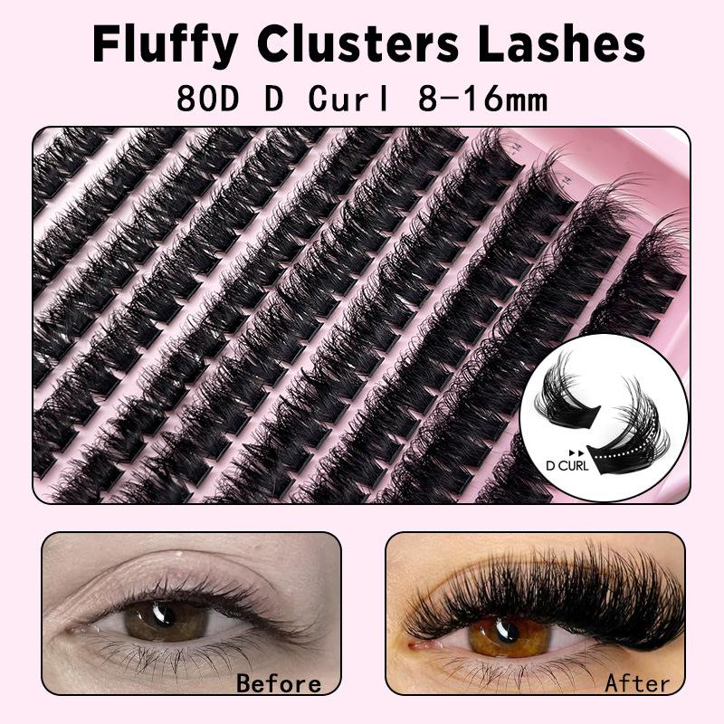 Segmentové umělé řasy 3D nadýchané 80D husté natočené jednotlivé trsy zažehlovací trsy řas 10-18 mm sada