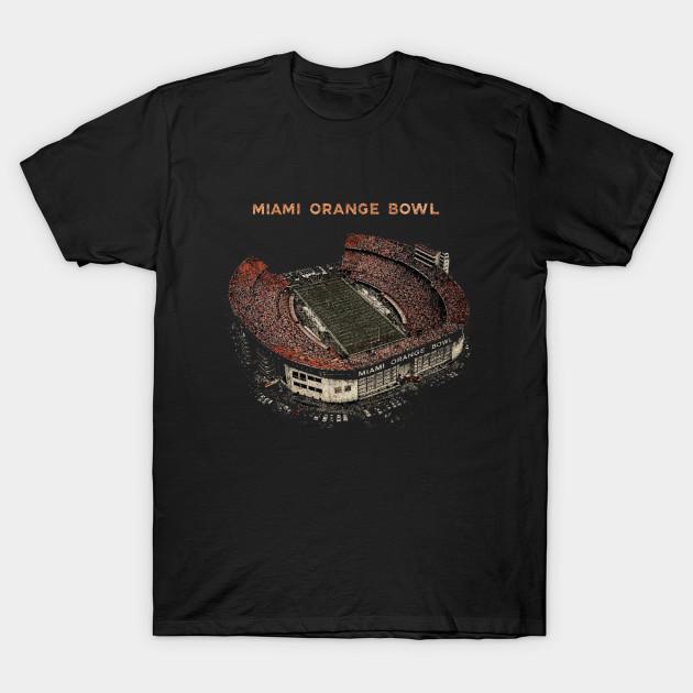 Men Black Print T-shirt Miami Orange Bowl – Legendary Stadium Tribute No-Cut Transfer Paper Print Cotton Tshirt