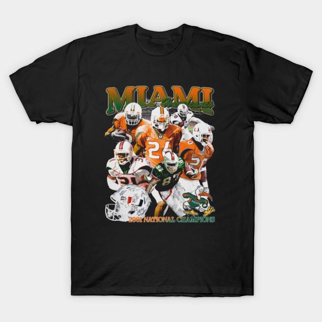 Men Black Print T-shirt Miami Hurricanes 2001 Championship No-Cut Transfer Paper Print Cotton Tshirt