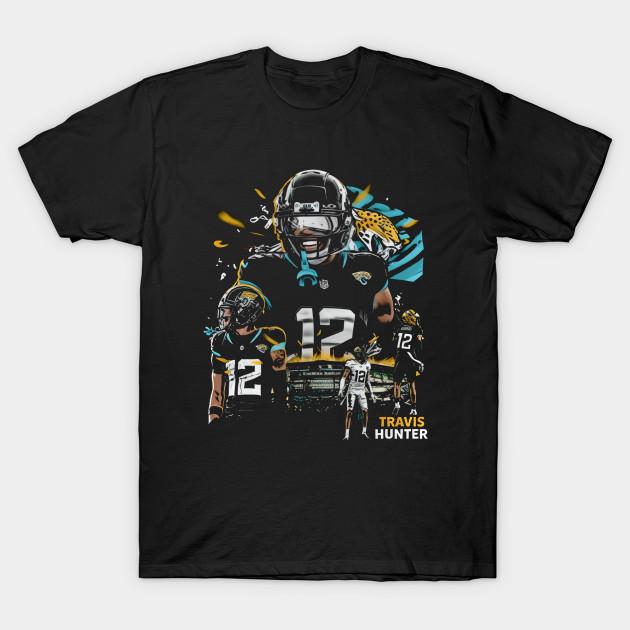 Men Black Print T-shirt Travis Hunter Jacksonville Flag No-Cut Transfer Paper Print Cotton Tshirt