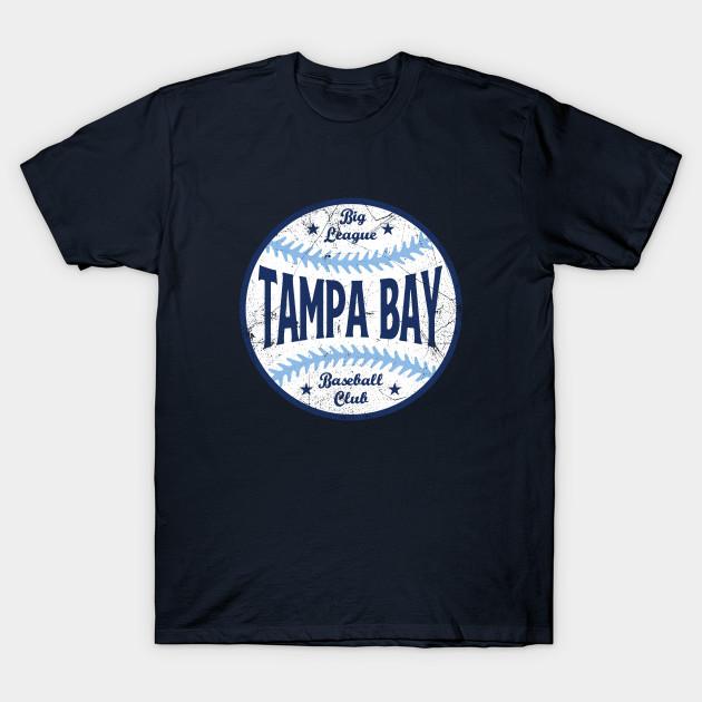 Men Black Print T-shirt Tampa Bay Retro Big League Baseball - Navy No-Cut Transfer Paper Print Cotton Tshirt