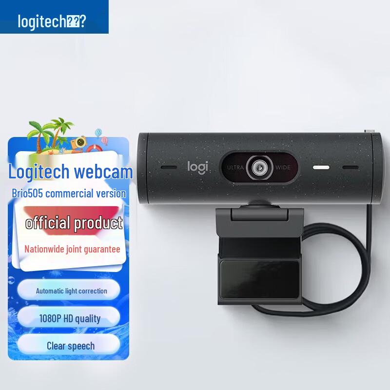 The Logitech Brio 505 is a high-definition 1080p webcam designed for video calls, meetings, and online classes. Featuring a wide-angle lens, autofocus, and a built-in microphone, it delivers clear audio and video. It includes a privacy cover for security and connects easily via Type-C, offering a driver-free setup for laptops and desktops.