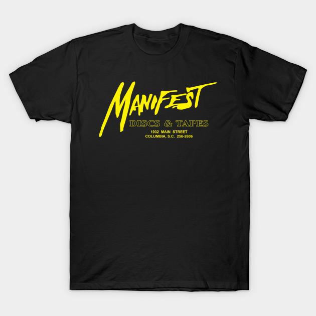 Men Black Print T-shirt Manifest Discs &Amp; Tapes No-Cut Transfer Paper Print Cotton Tshirt