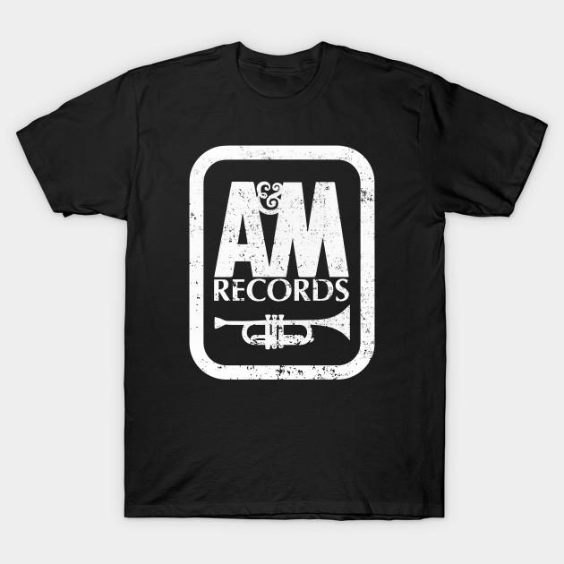 Men Black Print T-shirt A&Amp;M Records (Vintage) No-Cut Transfer Paper Print Cotton Tshirt