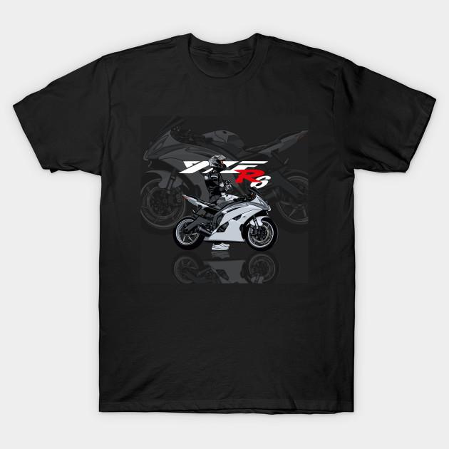 Pánské černé tričko s potiskem Bílé blesky: Yamaha R6 Bavlněné tričko s potiskem na přenosovém papíru bez řezání
