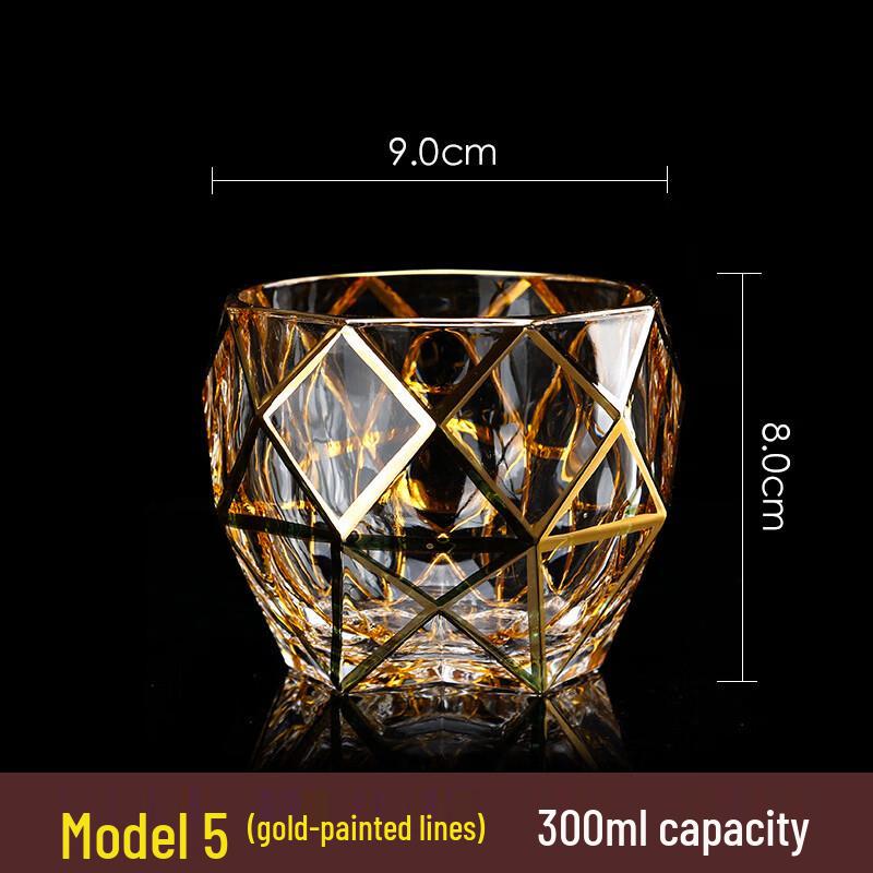 European Luxury Retro Crystal Whisky Glass with Gold Trim