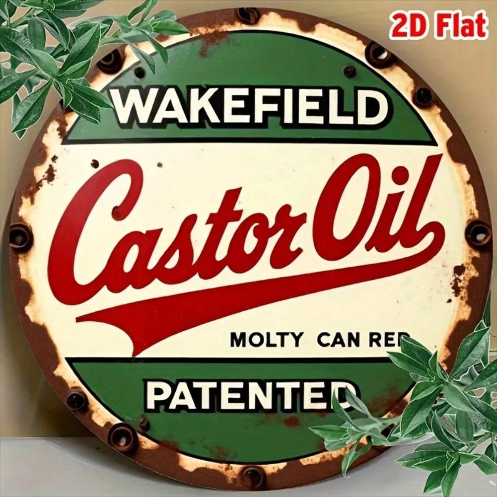 Vintage Retro Wakefield Castor Oil Metal Tin Sign Farmhouse Wall Decor