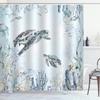 Coastal Turtle Shower Curtain Fish Coral Starfish Shell Blue Ocean Beach Waterproof Polyester Fabric Bathroom Curtains