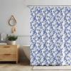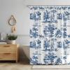 Vintage francouzská sprchová závěs Modrá a bílá látka Koupelnová sprchová závěs Statek Francouzský venkovský koupelnový závěs s háčky
