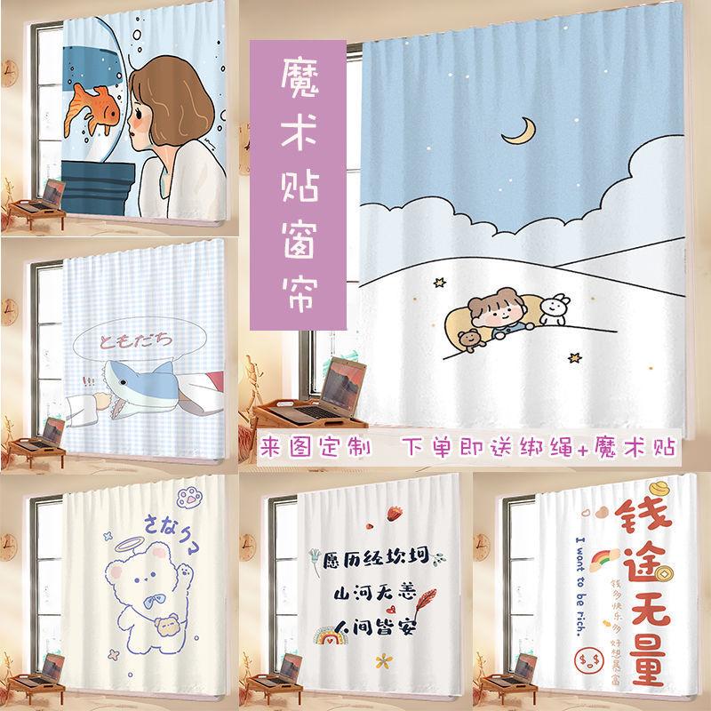 Velcro Curtains, Wind Self-Adhesive Type, No Punching, Easy Installation, Room Bedroom Decoration, Blocking Curtains, Small Curtains