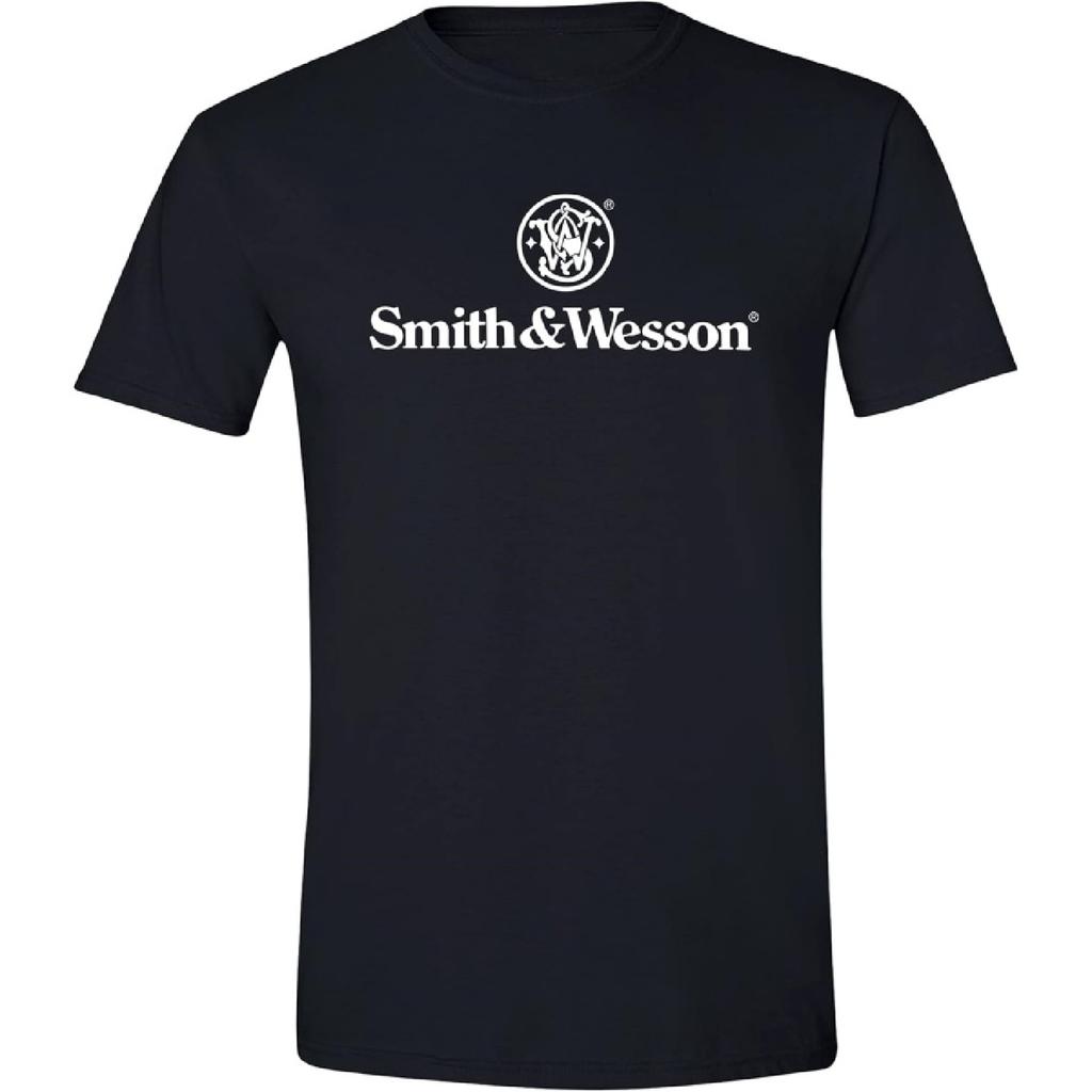 Oficiálně licencované pánské tričko s krátkým rukávem a kulatým výstřihem Smith & Wesson, Grafické tričko S&W Classic Stacked Logo
