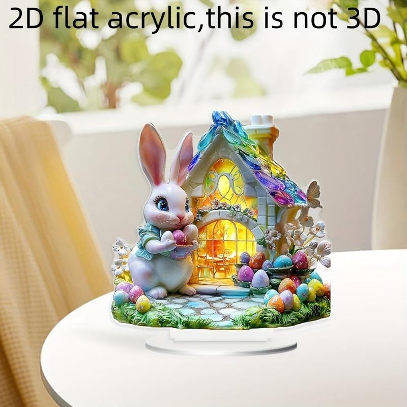 2D Flat Easter Bunny and Easter Eggs Acrylic Desktop Decorative Sign, Suitable for Wall Decoration, Porch, Room, Villa, Accents Home, Hallway, or Work