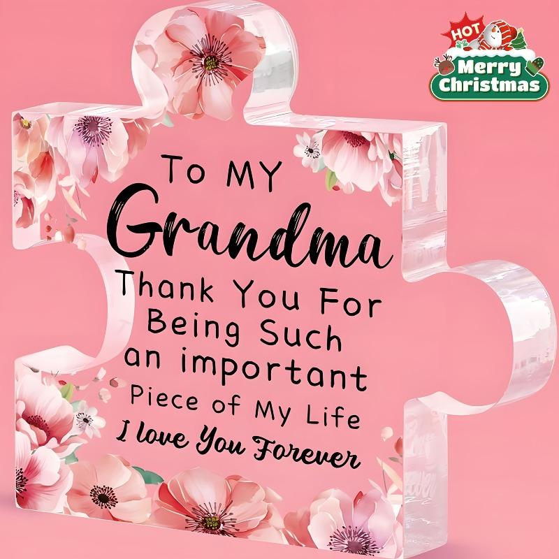 2D Flat "To My Grandma" Elegant Acrylic Puzzle Gift for Grandma Plaque, Floral Design, Suitable for Wall Decoration, Porch, Room, Villa, Accents Home,