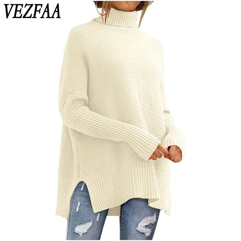 VEZFAA Dámská móda Ležérní podzim Zima Jednobarevné svetry s dlouhým rukávem a vysokým výstřihem