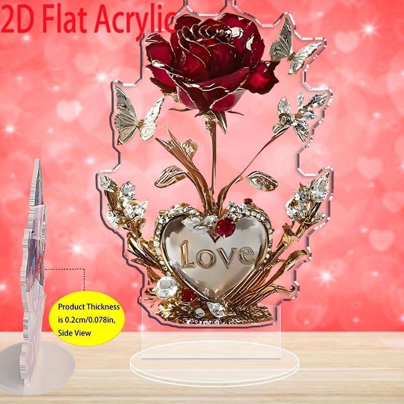 2D Flat Bohemiants Heart-shaped Rose Acrylic Desktop Decoration, Suitable for Wall Decoration, Porch, Room, Villa, Accents Home, Hallway, or Workplace