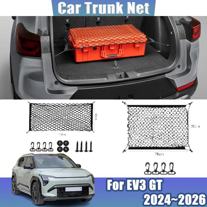 Pro Kia EV3 GT Line 2024~2026 Automobilové zadní síťky do kufru Černá síťovina Nylonový kufr Super elastický úložný sáček Balíček Autopříslušenství