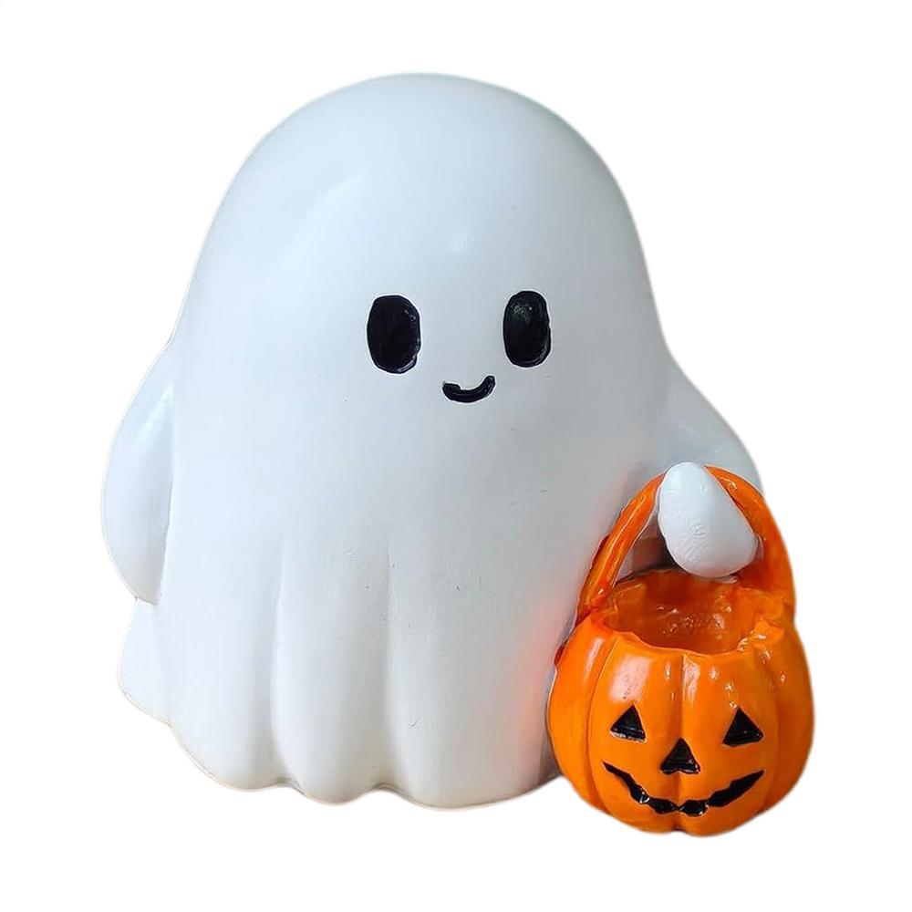 Ghost Pumpkin Figurine Miniature Lovely Cartoon Pumpkin Ghost Halloween Resin Cute Desk Display Ornament Home Decoration