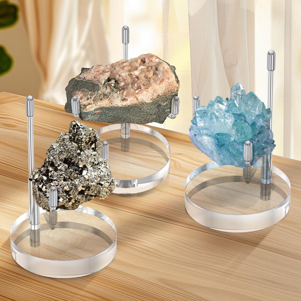 3/4Pcs Crystals Agate Display Stand Adjustable Metal Arm Acrylic Base Holder Tabletop Decoration Crystal Rock Photograph Stand