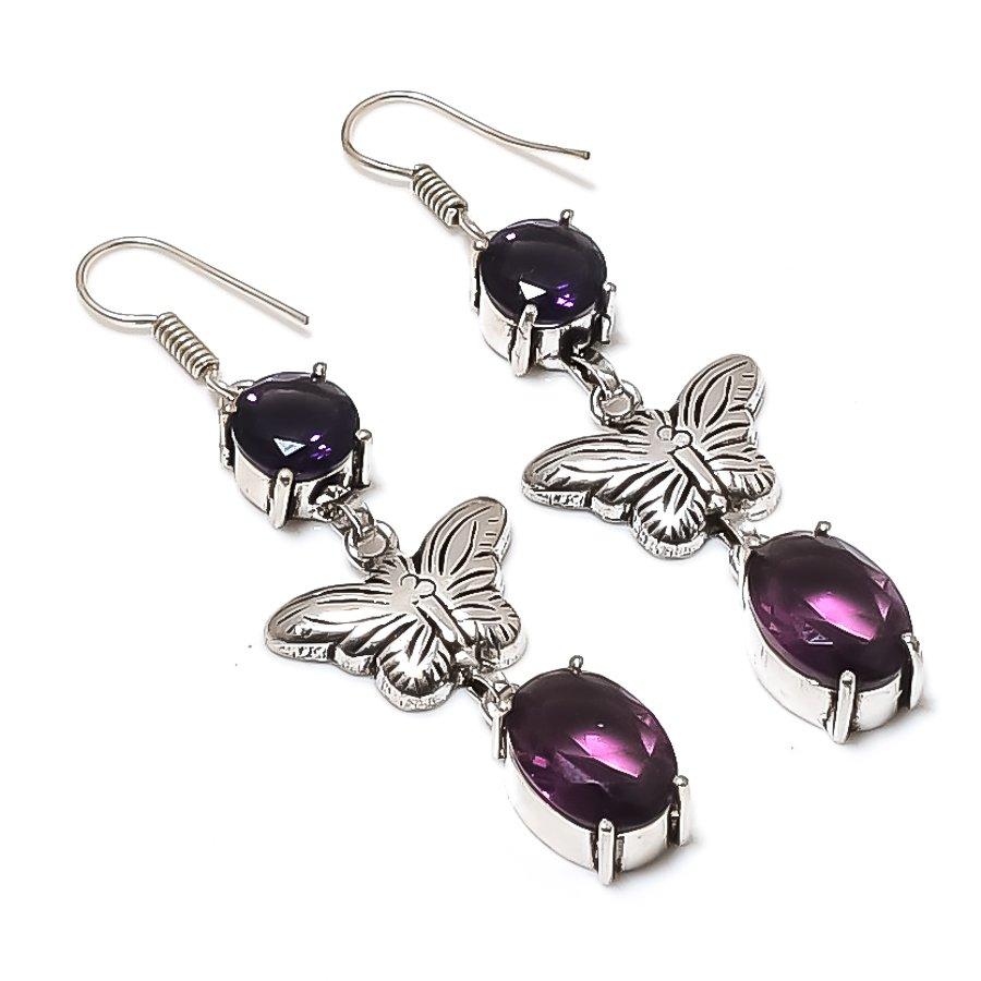 Natural Amethyst Gemstone 925 Sterling Silver Jewelry Earring 2.56" AEE-11256