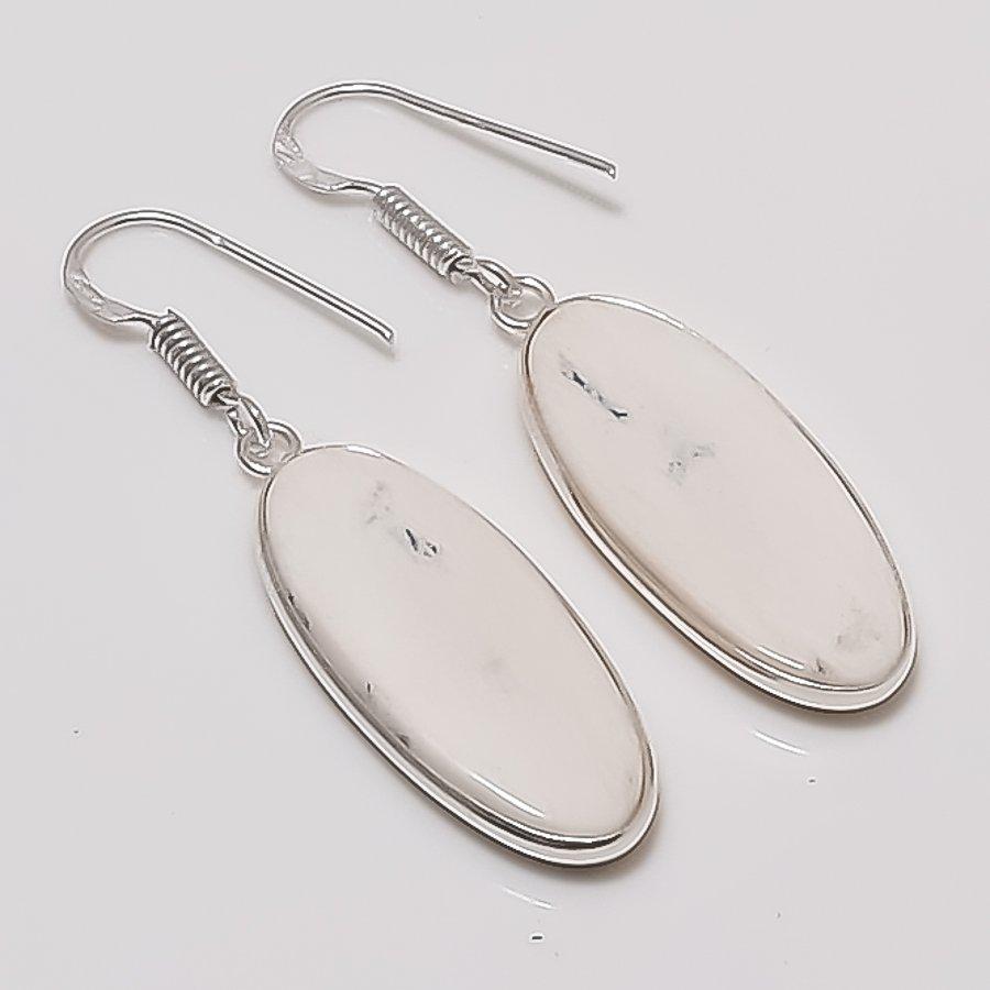 Natural Dendrite Opal Gemstone 925 Sterling Silver Jewelry Earring 1.89" AEE-11045