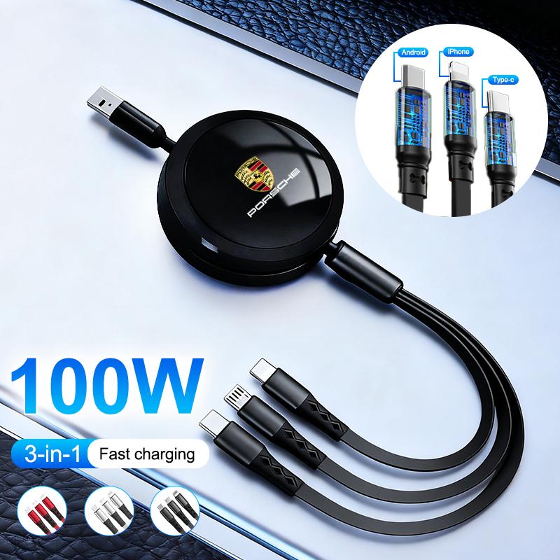 Car 3 in 1 USB Cable Type C Micro USB Fast Charging Cable For Porsche Cayenne Panamera Macan 911 Taycan Boxster Cayman 918Pajun